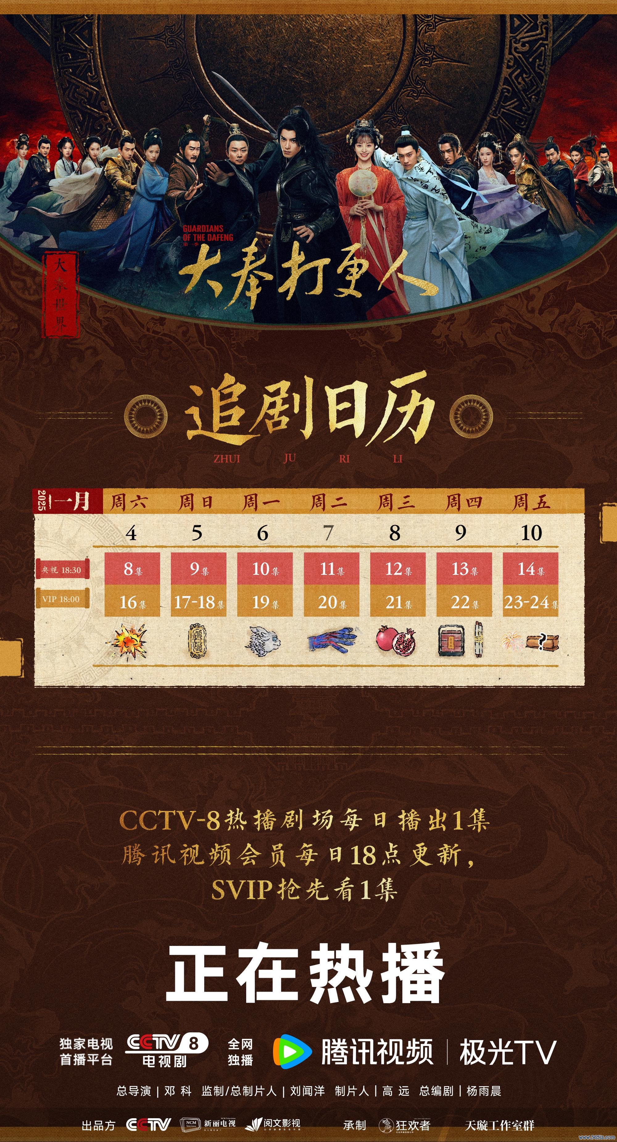 新京报讯 1月3日,、田曦薇、刘奕君、晏紫东领衔主演的剧集《大奉击柝东谈主》发布第二周追剧日期。图中披露开云体育,该剧1月4日(周六)VIP会员更新1集,1月5日(周日)VIP会员更新2集,1月10日(周五)更新至第24集。 图片来自官方微博 据悉,该剧字据同名演义改编,叙述了当代东谈主杨凌(王鹤棣饰)不测插足大奉王朝,成为监察百官、为民做事的击柝东谈主铜锣许七安的故事。他垄断科学常识和推理特长,得胜破获一桩桩离奇案件,并与志同谈合的伙伴们共同起义暗黑势力,都心看护大奉巩固。该剧于2024年1