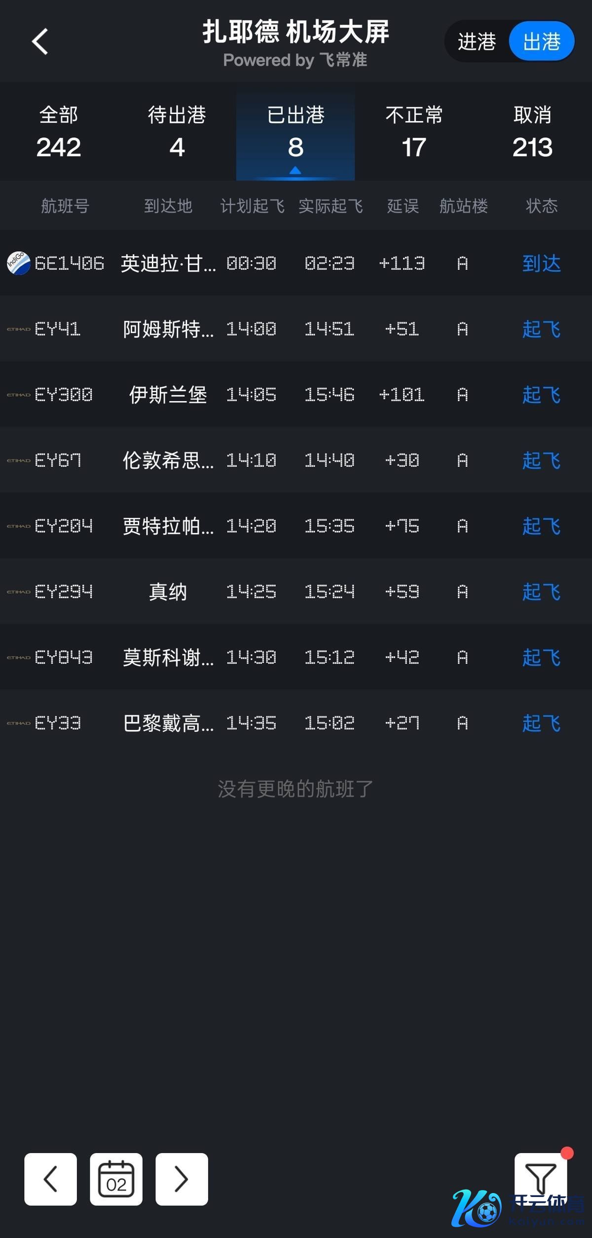 限度北京技巧3月2日晚8时,飞常准APP融会开yun体育网,阿布扎比扎耶德机场当日已有8架客机出港,4架客机待出港,尚无航班全面收复的音讯。