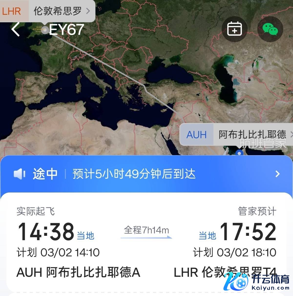 阿布扎比赶赴伦敦的客机腾飞(图源:航班管家)