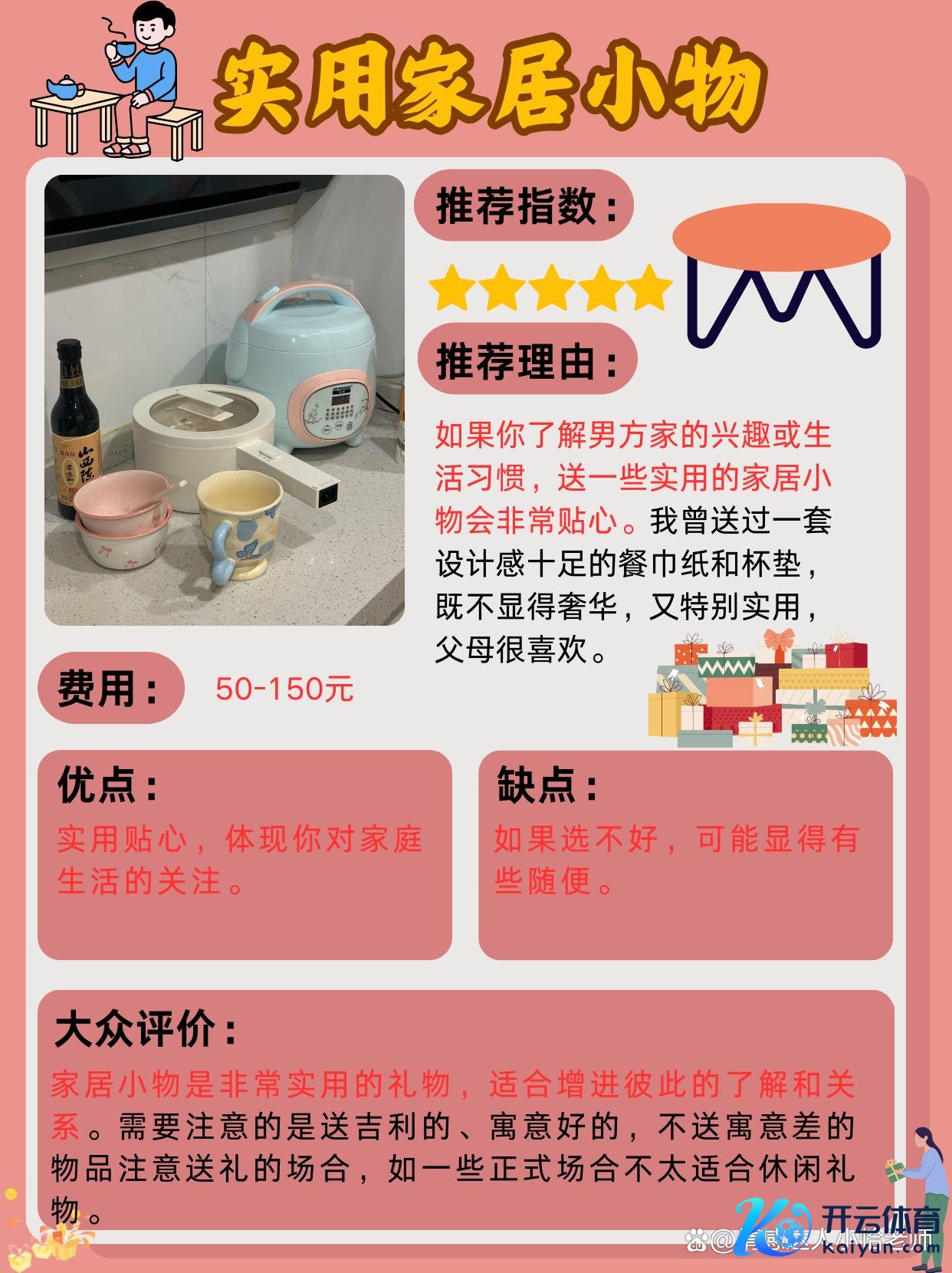 推选指数:⭐⭐⭐⭐⭐价钱:约50-150元推选事理:如若你了解男方家的一些风趣或生存习气,不错遴荐一些实用的小家居物品。像我其时送了一个有遐想感的杯垫和一套高等的餐巾纸,这么的礼物既不显得过于粉碎,又超越实用,父母也很可爱。优点:实用,贴心,细节感强,能体现你对家庭生存的热心。症结:如若选得不对适,可能会以为有点过于布置。群众评价:家居小物行为礼物,既能体现出对家庭的尊重,又能展示出你对生存品性的关注。