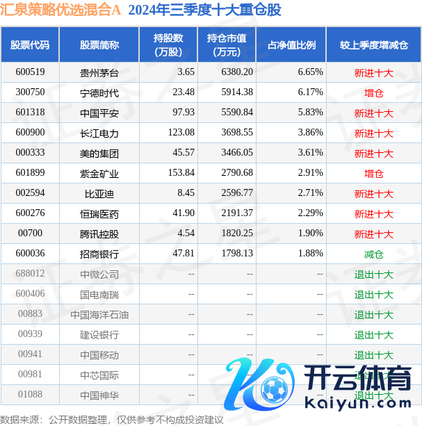 汇泉政策优选夹杂A为夹杂型-偏股基金,字据最新一期基金季报清醒,该基金钞票设置:股票占净值比80.63%,无债券类钞票,现款占净值比16.5%。基金十大重仓股如下: