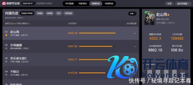 戒指9月27日中午12时43分,从“猫眼专科版”及时数据自大可知,面前热播电视剧中,网播热度最高的五部剧诀别如下: 1、《赴山海》 主演:成毅/古力娜扎/李凯馨 剧情点评:这是继《莲花楼》之后看过的第二部成毅的武侠片,剧情紧凑,丝丝入扣,武戏在线。加入了穿书的设定后开yun体育网,很新颖。况且剧中的细节也照应到位了,主角刚穿过来,提一稔,写信时空两格……,总体来说,还可以。但,成毅的造型拒毫不才一部古装剧里改一改,行动莲花楼粉丝,真的是好屡次认为我方在看莲花楼。另外,成毅的台词还有待进步。每次说台词时,嘴巴只消低频次地上唇贴下唇,应该是口齿不清。另外剧情方面,主角果然开了金手指,八大妙手传功就有点离谱。总之不是成毅粉,但剧是悦想法。淌若你杠,那就你对。