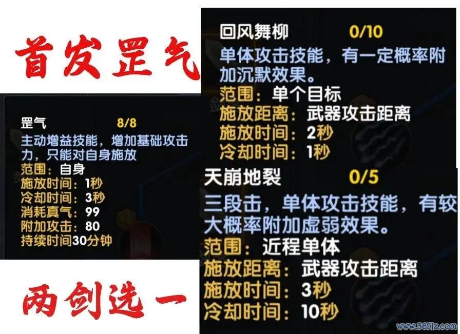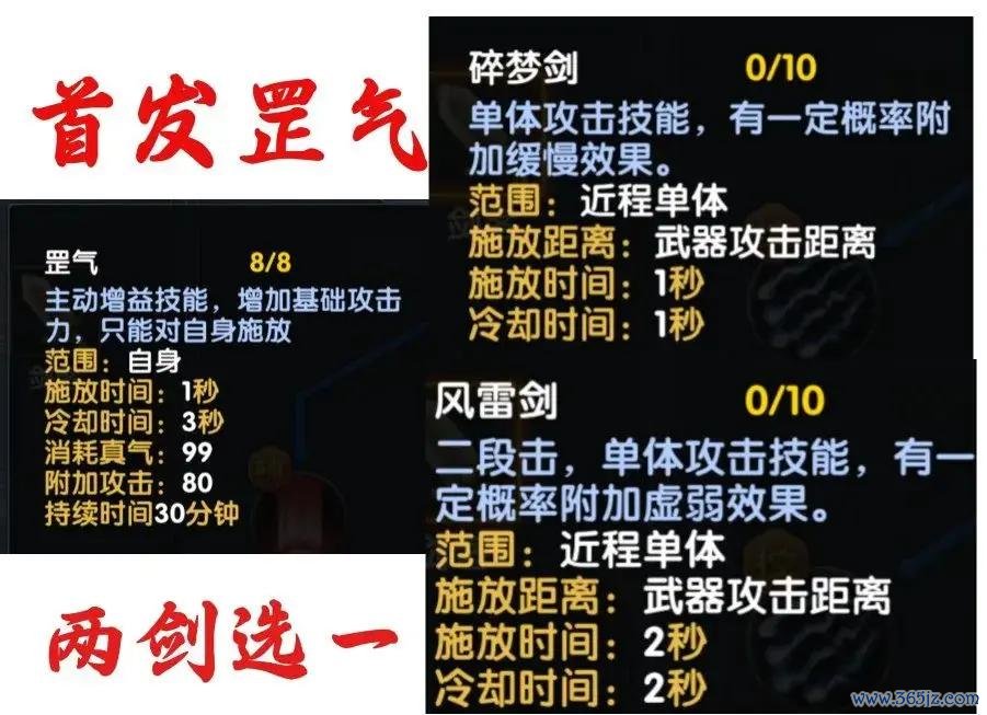 打BOSS/魁首:未学大招时: 罡气 + 碎梦剑 (或风雷剑) + 宽泛抨击。