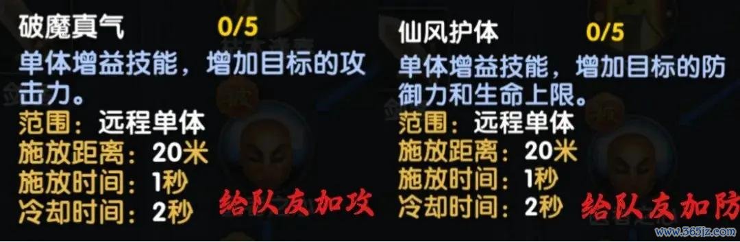 浓烈提议走纯扶植流! 抱紧大腿队友,专心加好 破魔真气 (加攻) 和 仙风护体 (加防),你便是团队最亮的星!QAQ 输出?交给队友吧!