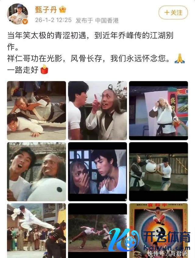 1月1日,香港著明演员、技击开荒袁祥仁因病于香港物化,享年69岁。 1月2日,演员甄子丹发文漫骂袁祥仁:畴前笑太极的青涩初遇,到比年乔峰传的江湖别作。祥仁哥功在光影,风骨长存。咱们持久怀念您。沿路走好 公开尊府炫耀,甄子丹1963年7月27日建设于中国广东省广州市,中国香港男演员、技击开荒、导演、监制、制片东说念主。 1984年,甄子丹与袁祥仁、沈殿霞等东说念主协作主演了笑剧动作电影《笑太极》,并认真参加演艺圈。该片为甄子丹的银幕处女作,由袁