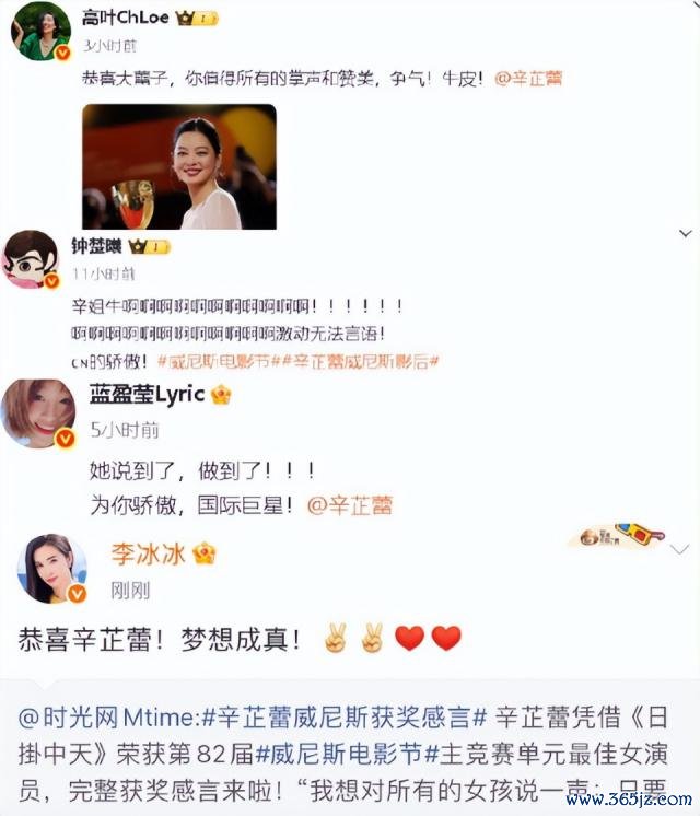 而在辛芷蕾斩获威尼斯外洋影后之后。