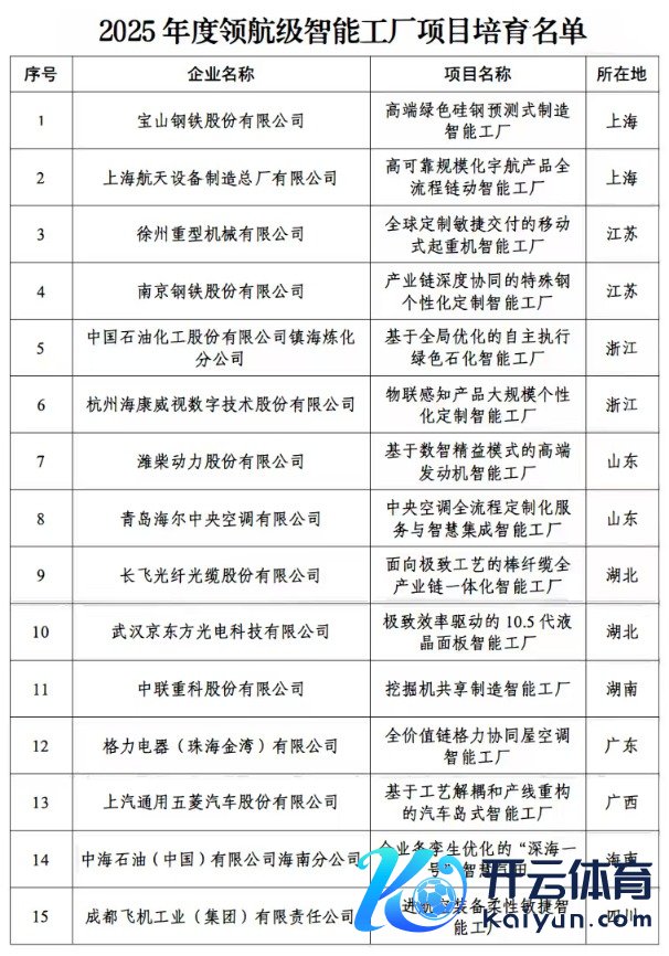 首批公布的领航级智能工场共15家,涵盖装备制造、原材料、电子信息、耗尽品等多个关节行业。工业和信息化部有关负责东说念主暗意,领航级智能工场,交融了新一代信息工夫、先进制造工夫、精益贬责理念等,代表了我国制造业智能化的最高措施。