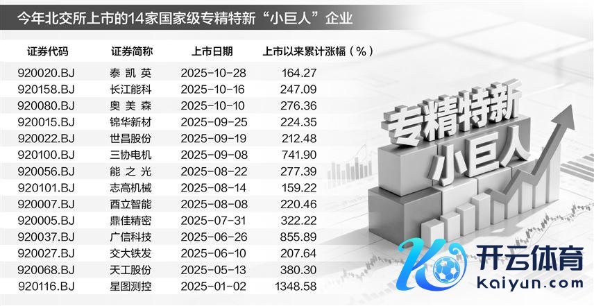 近日,工信部认真公示第七批国度级专精特新“小巨东说念主”企业名单,不少北交所公司名列其中。东方钞票Choice数据走漏,当今北交所公司中“小巨东说念主”企业数目已达169家,在280家公司中占比达60.35%。这一比例不仅彰显了北交所管事翻新式中小企业的定位开云体育,也折射出我国中小企业在细分规模的活力。 值得一提的是,“小巨东说念主”企业占北交所公司的比例还有望不息扩大。本年新上市的18家企业中,14家为国度级专精特新“小巨东说念主”企业,后备梯队中亦有多数“小巨东说念主”企业正在冲刺上市,